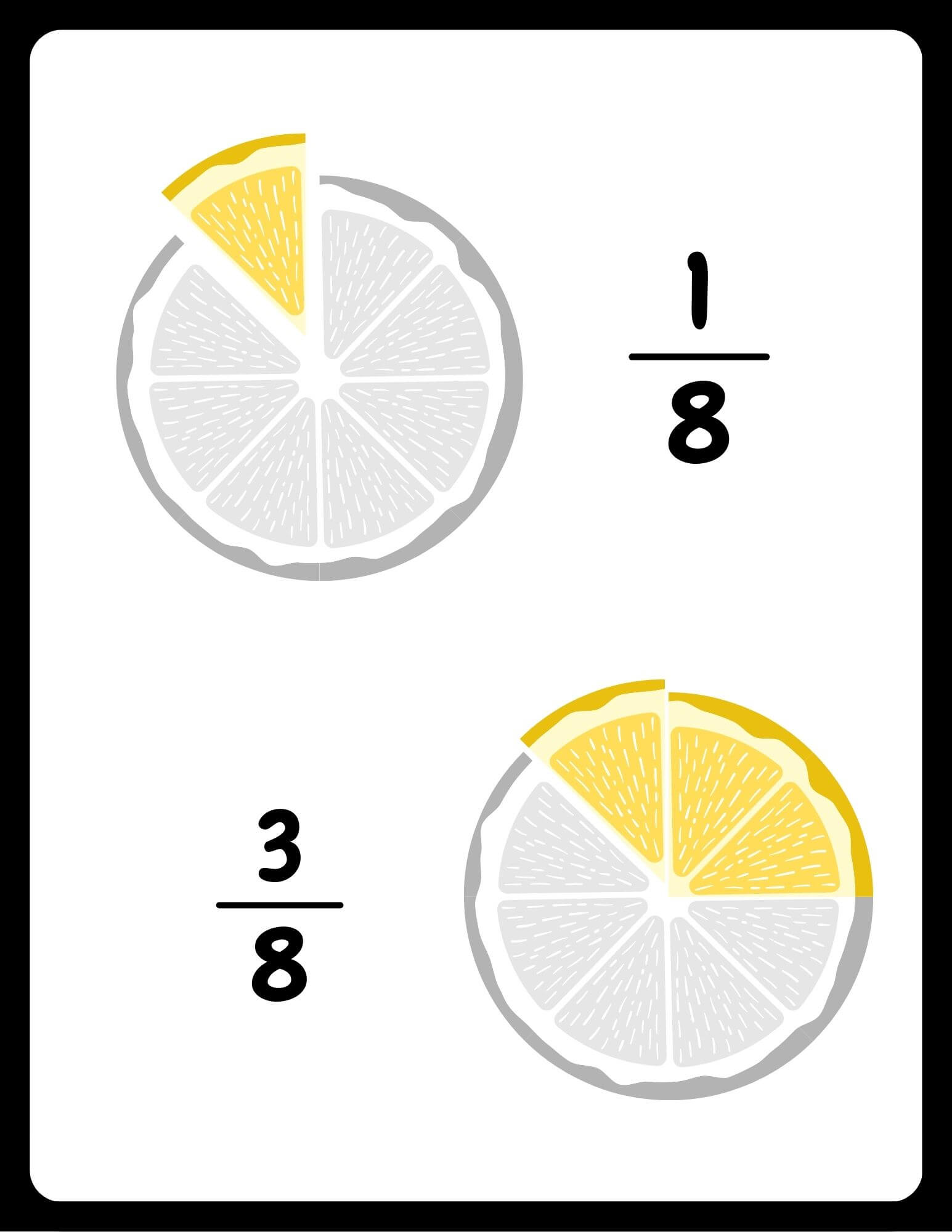 The denominator shows how many equal parts a whole is divided into, and the numerator shows how many of these parts are taken.